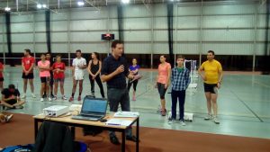 Le président de la section badminton, Jean-Marie, a brièvement pris la parole pour présenter le fonctionnement du club et l’équipe d’animation.