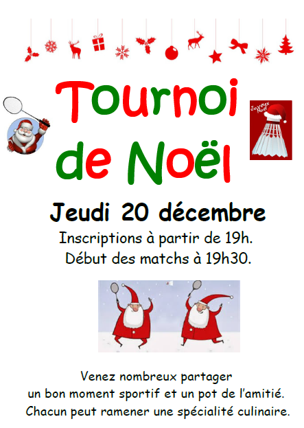 Pour les personnes ne pouvant venir au tournoi, nous vous souhaitons de très bonnes fêtes de fin d’année.