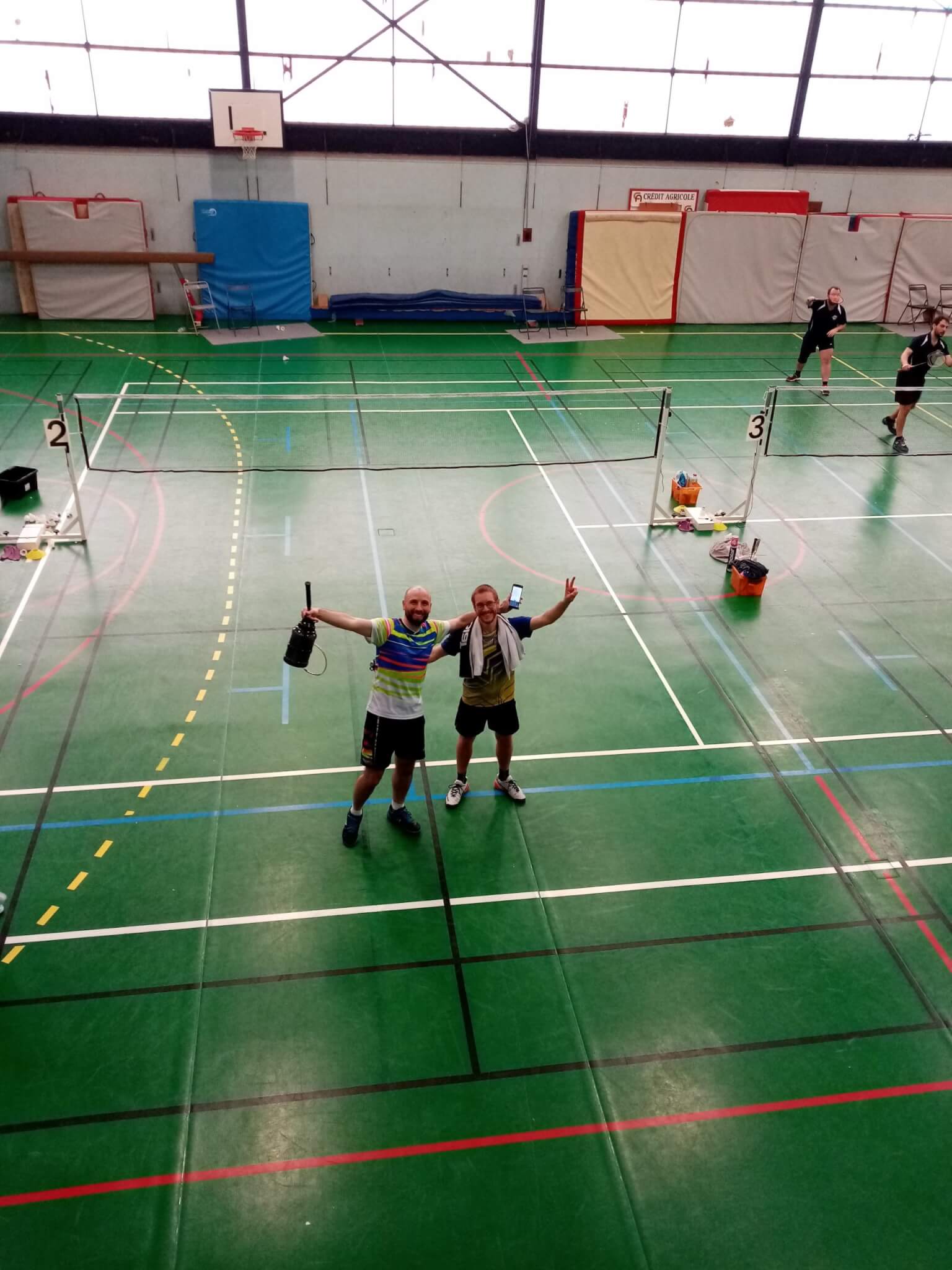 Pour ne rien changer aux habitudes, un nouveau duel fratricide opposa ensuite deux paires de l’équipe 1 en huitième : Pierre&Julie, qui avaient eu la mauvaise idée d’accepter le café un peu « amélioré » que je leur avais offert avant le match, cédèrent la place à Clémentine et moi-même pour un quart, hélas perdu de peu face à Paul et Patricia de Bois le Roi, malgré le coaching dévoué d’Andy…paire de BLR qui remporta d’ailleurs le tournoi face à nos hôtes Laetitia et Vincent.