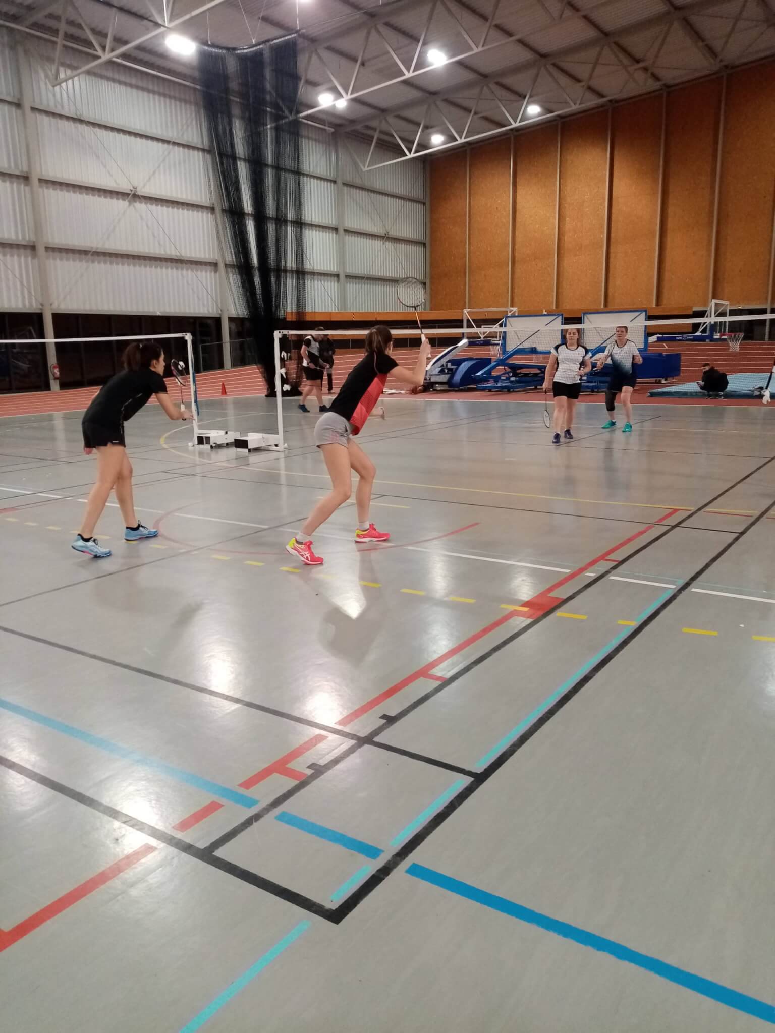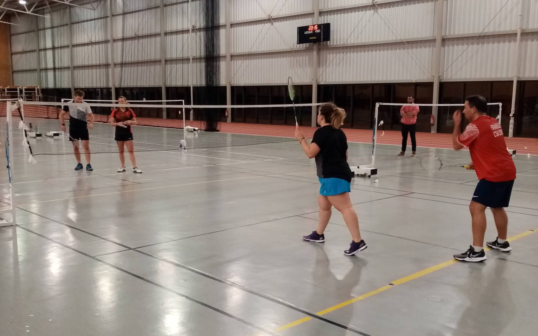 Quentin et Stéph avaient attaqué un double hommes lui aussi très chaud en même temps face à Nathan et Lowik, ça joue dur et nos deux joueurs n’arrivent pas à passer au premier (15-21), avant d’opérer un changement tactique au deuxième et de trouver plus de solutions, le troisième est tout proche…mais quelques « craquottages » (néologisme forgé par les filles) sur les derniers points, dont un service malencontreux, nous priva d’une prolongation…21-23.