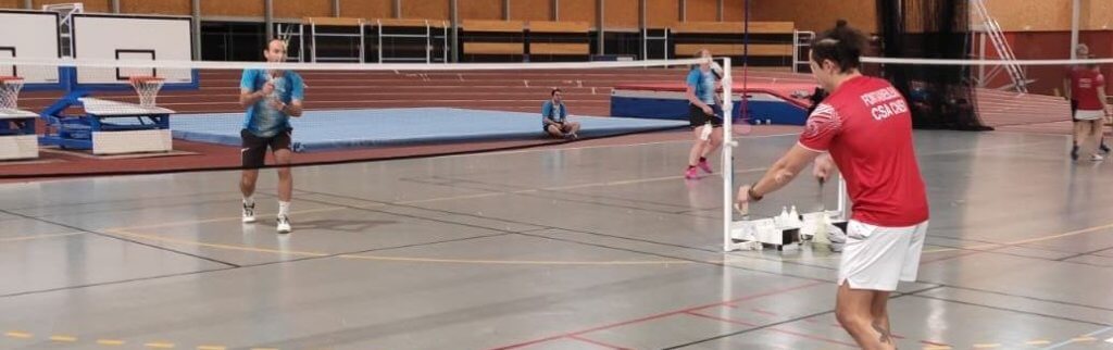 DH1 : Avec Aurélien nous remportons assez largement le premier set 21/11 pour perdre tout aussi largement le second 12/21 et finir par perdre le match 16/21 …